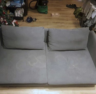 Kanapa była zabrudzona oraz zasikana przez Michalinę i Stefana - dwa pieski chihuahua.
